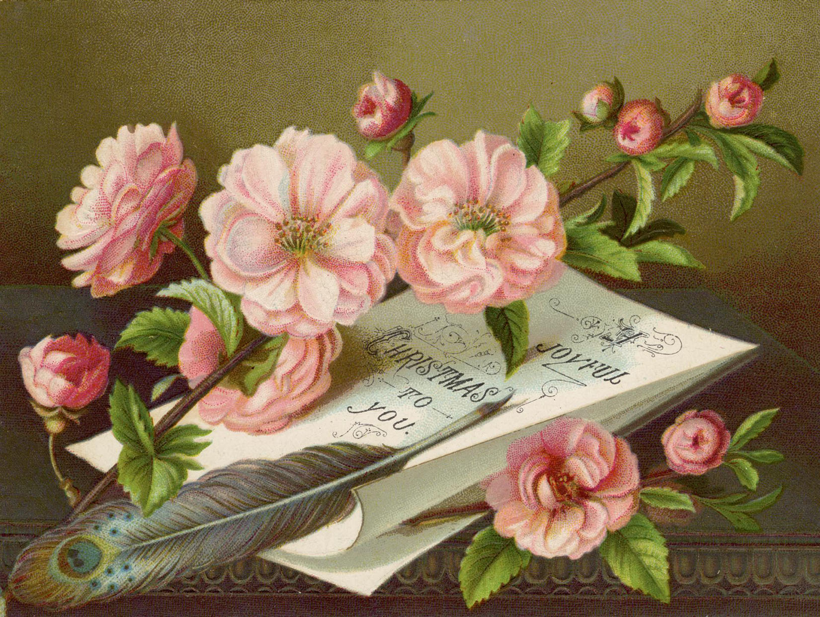 The pink cabbage roses are gorgeous!! And the pink and white roses with the Christmas greeting is stunning!