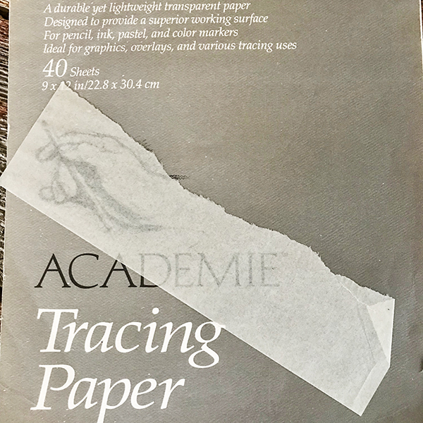 1. Place tracing paper on top of your printable and use paper tape to secure the top parts together. Add another piece of tape to secure the two paper together on one of the sides, too, somewhere on the upper side. We are only securing the top and a small part of the top side (and not all around) because we want to be able to lift the tracing paper from time to time to check our tracing progress.