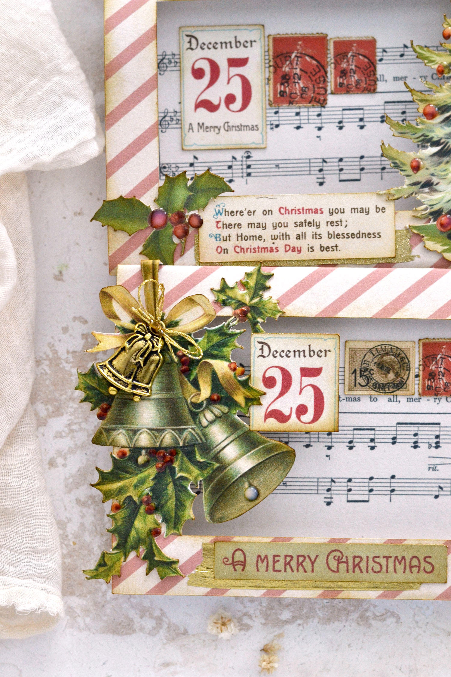 As you can see, I also added a small gold charm to the bells card to make it look more dimensional and intriguing. And just to give you an idea, if you want to take things to a new level of chicness, try adding small crafting bells that actually jingle! How amazing would that be?