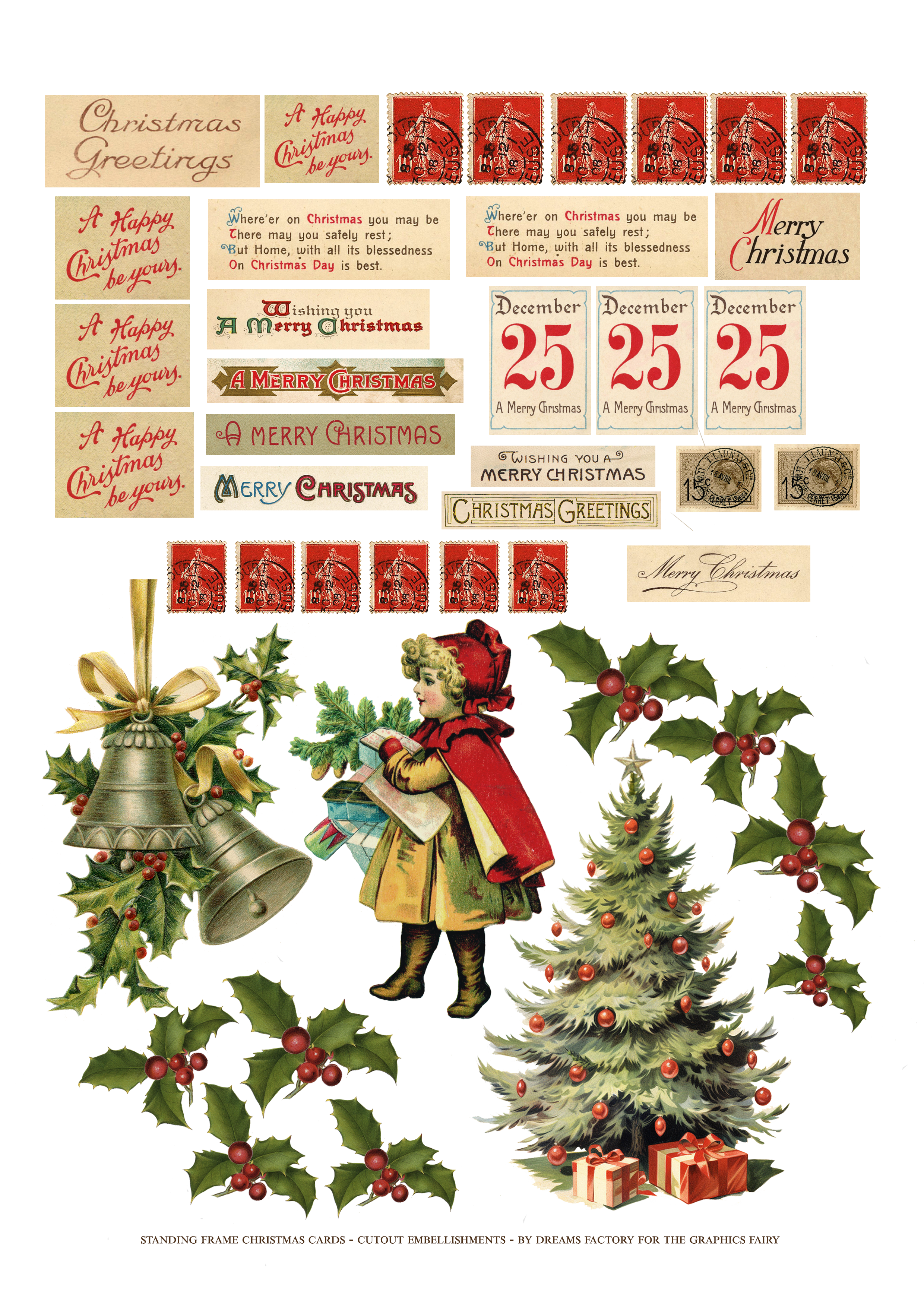 Hello, Graphics Fairy friends! I’m Diana from Dreams Factory and I’m happy to be here again to share another creative project with you! Today, I will show you how to make these beautiful Standing Printable Frame Christmas Cards that have a super cute vintage vibe. These will be perfect for gifting or displaying in your home for the holidays, they have that lovely touch of whimsy that can easily bring in a little bit of Christmas magic!