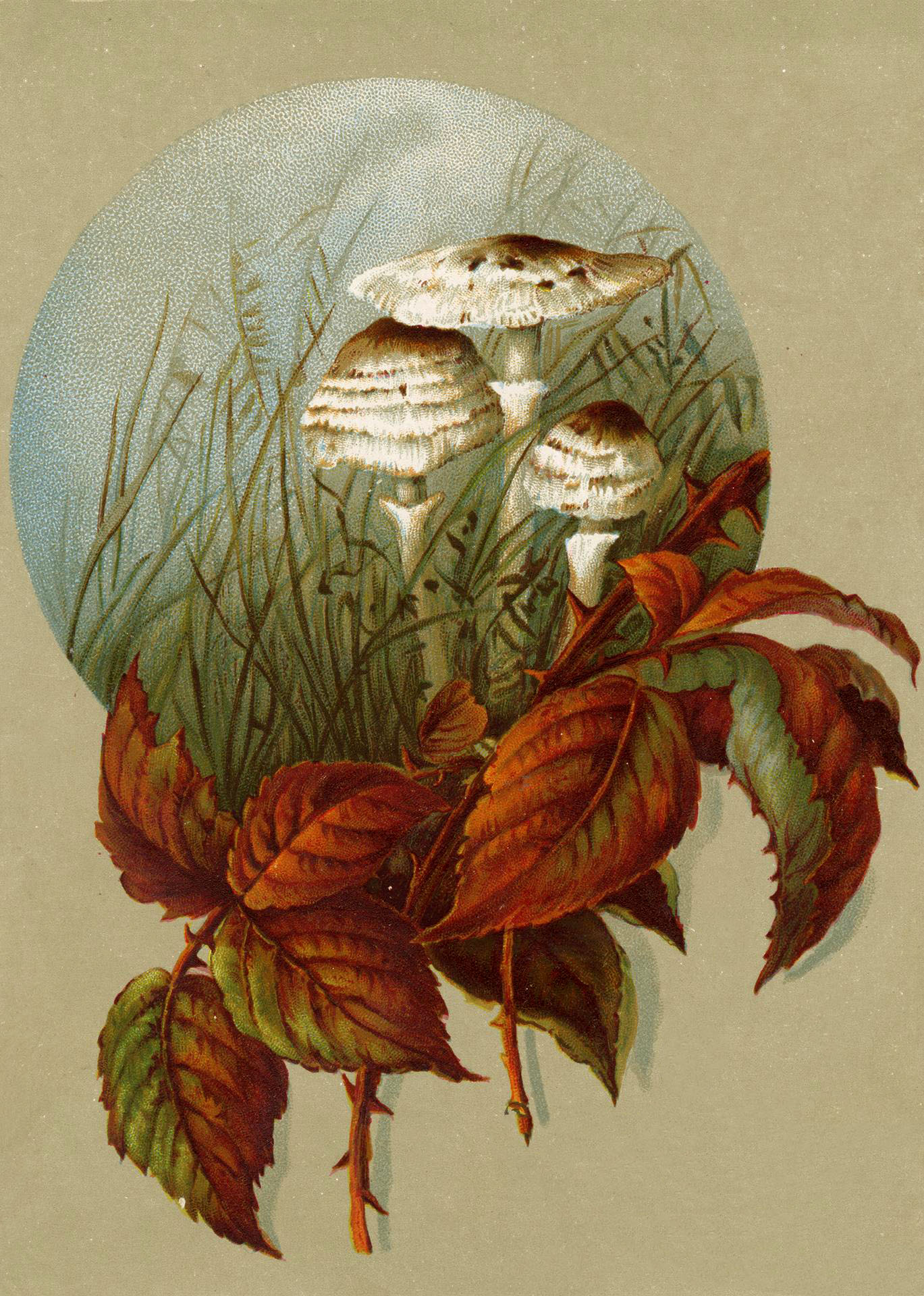 Featured here is a cute mushroom from an antique print. I’ve included two versions- one in color and the other in black and white to give you the option to add your own color if you prefer.