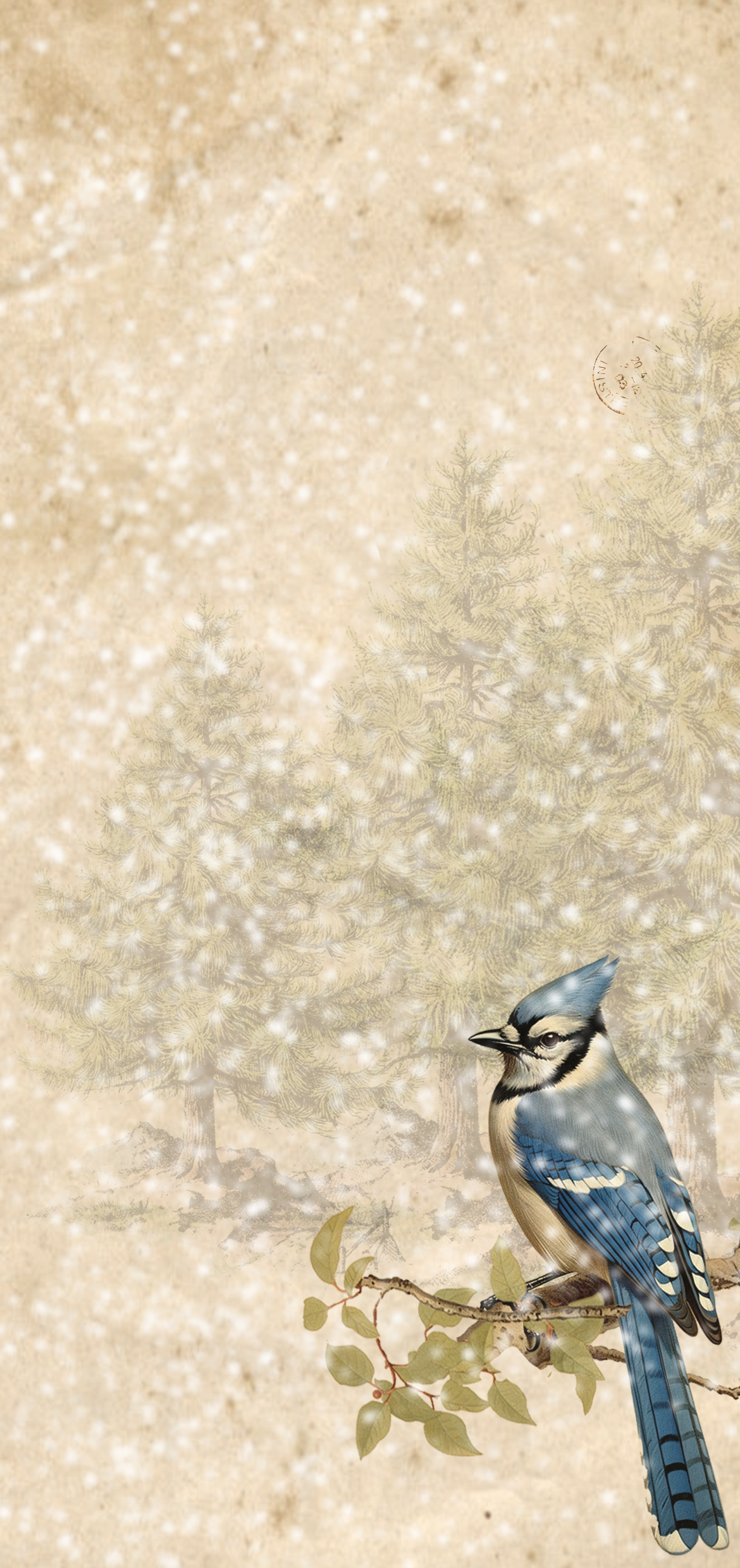 This next one might look more decorative than nostalgic, but I feel it speaks the most to our vintage-loving souls. Bluebirds are some of my all-time favorites! The overall snowy vibe of this wallpaper brings calmness but also a nice pop of color, don’t you think?